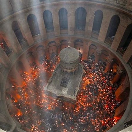 Σε πρωτόγνωρες συνθήκες άναψε φέτος το Άγιο Φως στον Πανάγιο Τάφο στα Ιεροσόλυμα.