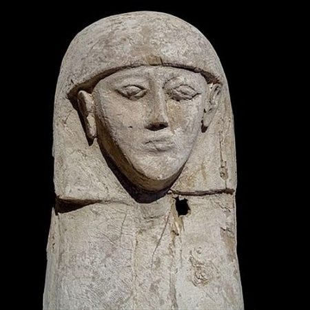 Η τομογραφία που πραγματοποιήθηκε στη σαρκοφάγο έδειξε την παρουσία στο εσωτερικό της του -σε κακή κατάσταση διατηρημένου- σώματος έφηβου κοριτσιού ηλικίας 15 ή 16 ετών, με ύψος 1,59. Στο στήθος του νεκρού κοριτσιού υπήρχαν τέσσερα περιδέραια που συνδέονταν μεταξύ τους με ένα κεραμικό εξάρτημα.
