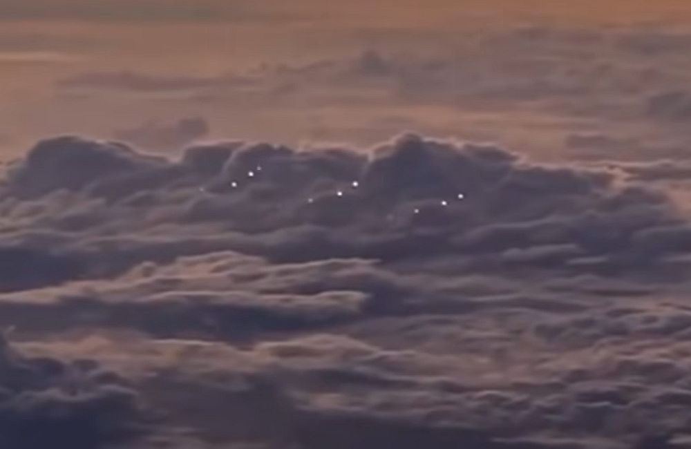 Το πρώτο βίντεο, σύμφωνα με το American Military News, έκανε τον γύρο των μέσων κοινωνικής δικτύωσης την προηγούμενη εβδομάδα και απεικονίζει ένα σμήνος από άγνωστης ταυτότητας ιπτάμενα αντικείμενα πάνω από τη Νότια Σινική Θάλασσα κοντά στο Χονγκ Κονγκ, τα οποία στη συνέχεια εξαφανίζονται στα σύννεφα. Το 53 δευτερολέπτων βίντεο κατεγράφη από πιλότο στις 24 Νοεμβρίου και δόθηκε στην ιστοσελίδα UFO Stalker στις 4 Δεκεμβρίου. Σε αυτό φαίνονται τρεις ομάδες των τεσσάρων φωτεινών αντικειμένων, με πιλότους να σχολιάζουν πως δεν ξέρουν τι είναι. Ωστόσο, αρκετοί φαν των UFO που είδαν το βίντεο λένε πως μάλλον είναι στρατιωτικές φωτοβολίδες.