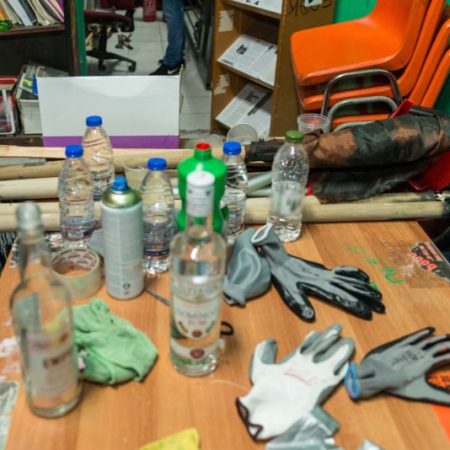 Υπενθυμίζεται ότι χθες, βρέθηκαν στο εσωτερικό του Πανεπιστημίου κοντάρια, κράνη, γάντια, κουκούλες full face, ρούχα-υλικά αμφίεσης για κάλυψη χαρακτηριστικών αλλά και πυροσβεστήρες, διαρρηκτικά εργαλεία, φυλλάδια αναρχικού περιεχομένου και κομμάτια από μάρμαρα και πέτρες που χρησιμοποιούνται σε επιθέσεις.