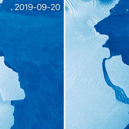 Το 2017 είχε αποκολληθεί το παγόβουνο A68 από το στρώμα πάγου Larsen, παίρνοντας μαζί του στο νερό ένα τρισεκατομμύριο τόνους πάγου.