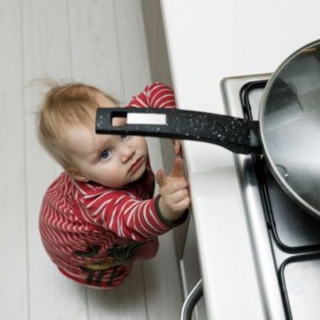 Η ηλεκτρική κουζίνα. Είναι το πρώτο που θα πρέπει να μας απασχολήσει. Ειδικά τα μάτια της κουζίνας, όταν είναι αναμμένη, θέλουν μεγάλη προσοχή. Τα παιδιά μπορεί να τραβήξουν το χερούλι μιας κατσαρόλας, γι’ αυτό φροντίστε τα χερούλια να είναι στραμμένα πάντα προς τα μέσα.