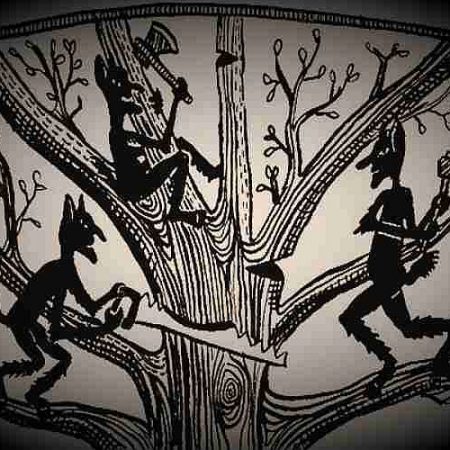 «Έρχονται από τη γης από κάτω. Όλο το χρόνο πελεκούν με τα τσεκούρια να κόψουν το δένδρο που βαστάει τη γης , αλλά όταν κοντεύουν να το κόψουν έρχεται ο Χριστός και μονομιάς ξαναγίνεται το δένδρο και τότε τα δαιμόνια χιμούν στη γης επάνω και πειράζουν τους ανθρώπους» Νικόλαος Πολίτης
