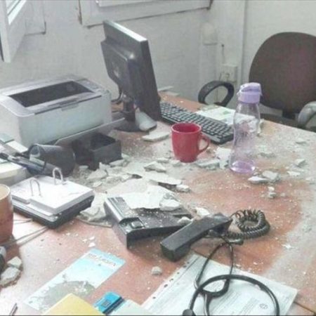 Τρίτωσε το κακό στο Νοσοκομείο της Βέροιας, μετά τη νέα πτώση σοβάδων που έγινε στη Νεφρολογική κλινική στο γραφείο των γιατρών, τραυματίζοντας ελαφρά έναν από αυτούς στο πόδι. Οι ζημιές που προκλήθηκαν πάντως θυμίζουν περισσότερο εικόνες ύστερα από σεισμό.