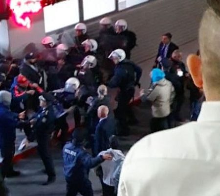Αυτό που φαίνεται ξεκάθαρα είναι οπαδοί του Ολυμπιακού, που μάλιστα ειναι διαπιστευμένοι (!), να επιτίθενται σε ποδοσφαιριστές του Δικεφάλου του Βορρά (Σφιντέρσκι αρχικά, αλλά και Πασχαλάκη) και τις αστυνομικές δυνάμεις να προσπαθούν να προστατεύσουν τους παίκτες.