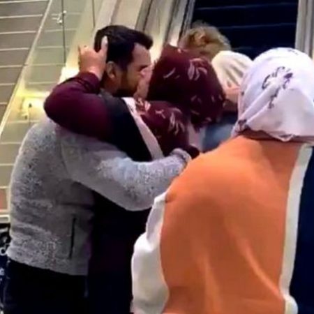 Η γυναίκα από τη Συρία περιμένει με αγωνία τον γιο της σε αεροδρόμιο του Καναδά και, όταν αυτός καταφτάνει, χαιρετιούνται αγκαλιάζοντας ο ένας τον άλλον