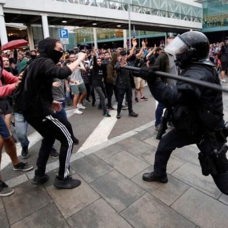 Μάλιστα η προχθεσινή (Παρασκευή) νύχτα, ήταν η χειρότερη από άποψη επεισοδίων των τελευταίων δεκαετιών για τη Βαρκελώνη, καθώς νεαροί με καλυμμένα τα πρόσωπα απέκλεισαν δρόμους βάζοντας φωτιά σε κάδους απορριμμάτων και πέταξαν πέτρες εναντίον των δυνάμεων ασφαλείας.