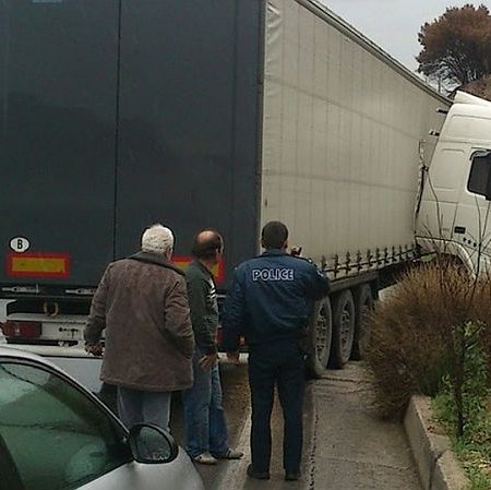 Ο οδηγός της νταλίκας έχασε τον έλεγχο του οχήματος εξαιτίας της ολισθηρότητας του δρόμου, έκανε περιστροφές και κατέληξε στο διαχωριστικό κιγκλίδωμα. Χρειάστηκε η επέμβαση της Πυροσβεστικής Υπηρεσίας προκειμένου να κοπούν οι προστατευτικές μπάρες που έπεσαν στο οδόστρωμα με αλυσοπρίονο και να απομακρυνθούν για να δοθούν και πάλι στην κυκλοφορία και τα δύο ρεύματα της εθνικής οδού.