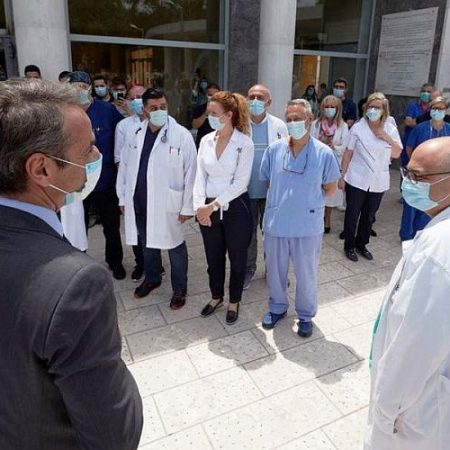 Ο Κυριάκος Μητσοτάκης επισήμανε ότι πρωτίστως χάρη στην ευσυνειδησία και την αυτοθυσία του υγειονομικού προσωπικού η Ελλάδα είναι σήμερα «παράδειγμα προς μίμηση παντού στον κόσμο». Προσέθεσε ότι μία αδυναμία του ΕΣΥ ήδη αντιμετωπίζεται χάρη στις έκτακτες προσλήψεις που έχουν γίνει, οι οποίες θα πάρουν μόνιμα χαρακτηριστικά.