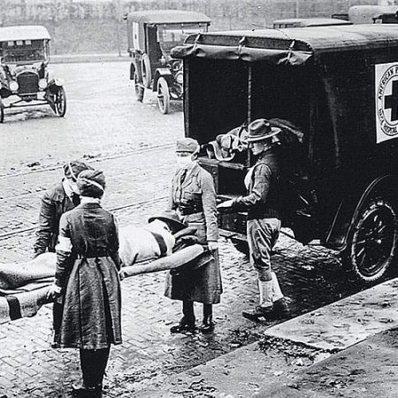 Σεπτέμβριος του 1918. Μια νοσοκόμα γεμίζει μια κανάτα με νερό για τους Αμερικανούς στρατιώτες που επέστρεψαν νοσούντες από την Ευρώπη και αναρρώνουν σε πρόχειρη μονάδα στη Μασαχουσέτη
