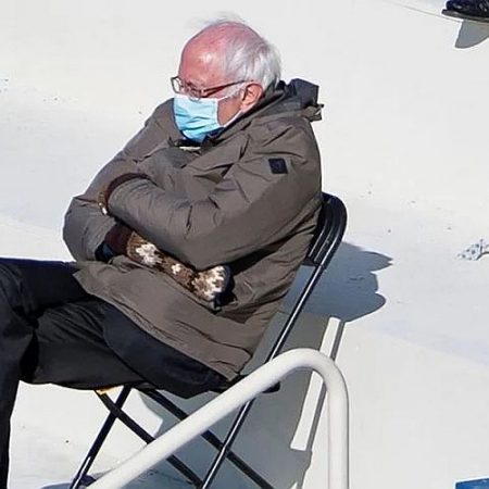Grumpy chic (γκρινιάρικη κομψότητα) αποκάλεσαν το ενδιαφέρον στυλιστικά λουκ του οι σχολιαστές. Τα γάντια αυτά τα είχε πλέξει μια δασκάλα από την πολιτεία του και του τα είχε χαρίσει όταν εκείνος έχασε τη μάχη για το χρίσμα των Δημοκρατικών το 2016. «Στο Βερμόντ ξέρουμε από κρύο και δεν μας ενδιαφέρει και πολύ η εμφάνιση», είπε ο Σάντερς, βλέποντας τη φωτογραφία του να κυκλοφορεί στο Ιντερνετ και να γίνεται φωτομοντάζ, μεταφέροντας τον ίδιο και την καρέκλα του στα πιο απίθανα σημεία.