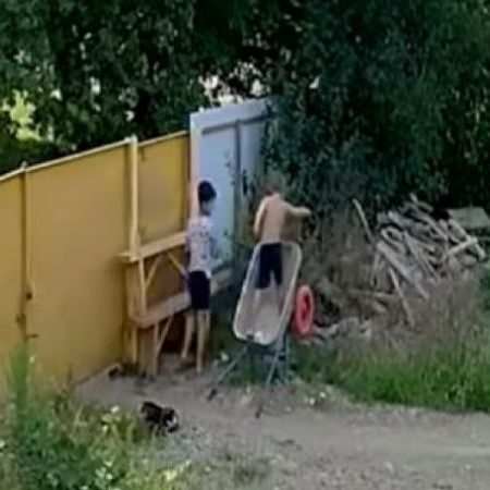 Σε αυτό λοιπόν φαίνονται τα δύο αγόρια να έχουν κλέψει μία καρότσα από οικοδομή στο Κράσνονταρ, αλλά να έχουν «κολλήσει» στο πως θα την περάσουν από την περίφραξη.