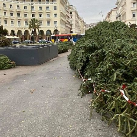 Θεσσαλονίκη: Έφτασε το τεράστιο χριστουγεννιάτικο έλατο στην Αριστοτέλους