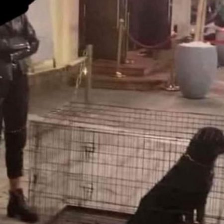Όπως φαίνεται στις φωτογραφίες που πλήθος κόσμου ανάρτησε στα social media εκφράζοντας τη δυσαρέσκεια του, δύο ροτβάιλερ βρίσκονταν σε κλουβιά στην είσοδο του μαγαζιού.