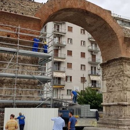 Άρχισαν από σήμερα Δευτέρα να μπαίνουν οι σκαλωσιές για τις εργασίες συντήρησης των γλυπτών της Αψίδας του Γαλερίου. Οι εργασίες, οι οποίες αναμένεται να αρχίσουν τις επόμενες ημέρες και να ολοκληρωθούν μέχρι το τέλος του 2020, προέκυψαν από τα αποτελέσματα διατμηματικής ερευνητικής εργασίας, στην οποία συμμετείχαν μέλη από τα τμήματα Γεωλογίας, Χημείας και Φυσικής του ΑΠΘ, καθώς και από το τμήμα Συντήρησης της Εφορείας Αρχαιοτήτων Πόλης.