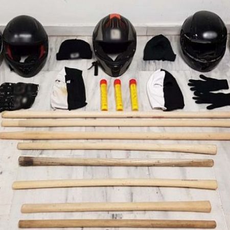 Κατασχέθηκαν, μεταξύ άλλων, ξύλινα αντικείμενα – κοντάρια, βεγγαλικά, κουκούλες τύπου full face, αντικείμενα με διακριτικά ομάδας, πρόσφορα για επίθεση