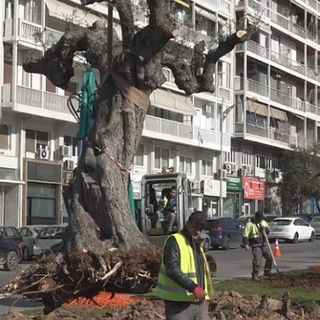 Τριάντα αιωνόβιες ελιές από τη Χαλκιδική φυτεύονται σε ένα από τα πιο κεντρικά σημεία της Θεσσαλονίκης και συγκεκριμένα κατά μήκος της οδού Αγγελάκη, «μεταμορφώνοντας» την εικόνα του δρόμου.