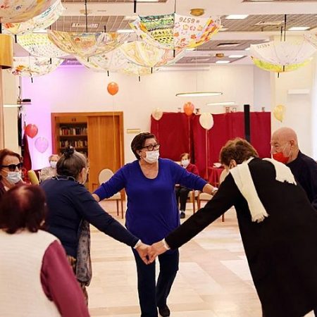Με μουσική, χορό, μπαλόνια και μάσκες γιόρτασαν τον εμβολιασμό τους κατά του κορωνοϊού, οι ηλικιωμένοι που ζουν στον οίκο ευγηρίας Λεβ Γκανίμ στην πόλη Νετάνια του Ισραήλ.