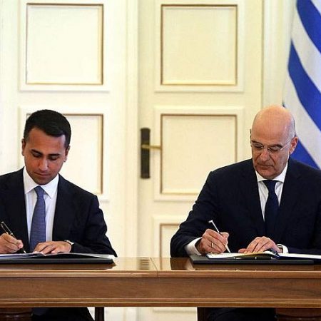Τη συμφωνία υπέγραψαν ο υπουργός Εξωτερικών Νίκος Δένδιας με τον Ιταλό ομόλογό του Λουίτζι Ντι Μάιο (Luigi Di Maio), ο οποίος βρίσκεται σήμερα στην Αθήνα.