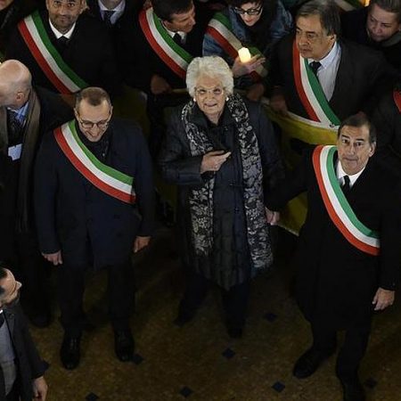 Πλαισιωμένη από 600 δημάρχους, όλων των πολιτικών αποχρώσεων, αποθεώθηκε χθες το βράδυ στο Μιλάνο η ισόβια γερουσιαστής και επιζήσασα του Ολοκαυτώματος Λιλιάνα Σέγκρε, στην εντυπωσιακή σε θέαμα και παλμό εκδήλωση που διοργάνωσαν οι πρώτοι πολίτες των ιταλικών πόλεων ενάντια στο μίσος στην κοινωνία και τις απειλές, των οποίων αυτή η εμβληματική γυναίκα έχει αποτελέσει στόχο τον τελευταίο καιρό.