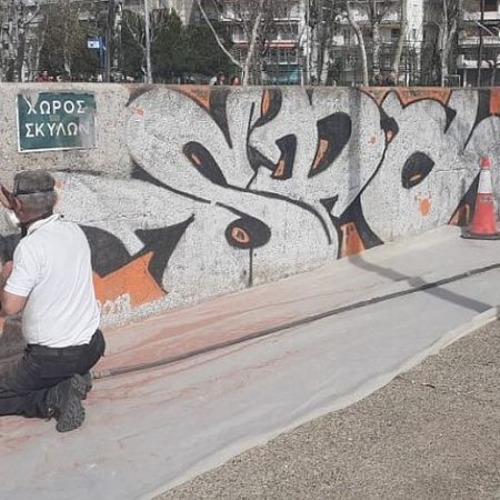 Επιχείρηση καθαρισμού επιφανειών από γκράφιτι βρίσκεται σε εξέλιξη στον δήμο Θεσσαλονίκης.