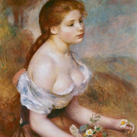«A Young Girl with Daisies» (1889) πίνακας του Pierre Auguste Renoir (1841-1919)