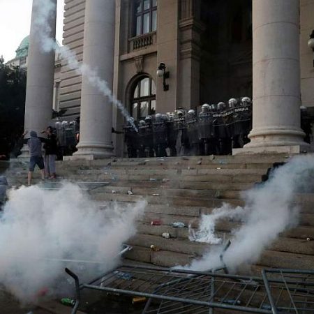 Ισχυρές δυνάμεις της αστυνομίας διέλυσαν τη συγκέντρωση που διοργάνωσε η αντιπολίτευση μπροστά από την βουλή της Σερβίας.