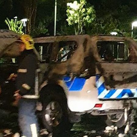 Η κατάσταση έχει βγει εκτός ελέγχου καθώς μερίδα διαμαρτυρόμενων φωνάζοντας συνθήματα, έκαψε κάδους απορριμάτων, άναψε φωτοβολίδες, ενώ στις φλόγες τυλίχθηκε περιπολικό της Αστυνομίας.
