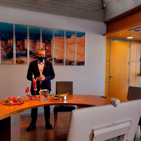 Τα κάλαντα έψαλαν σήμερα, διαδικτυακά, στον δήμαρχο Θεσσαλονίκης, Κωνσταντίνο Ζέρβα, παιδιά των δημοτικών παιδικών σταθμών και των παιδικών σταθμών του Οργανισμού Βρεφονηπιακής, Παιδικής και Οικογενειακής Μέριμνας (ΟΒΡΕΠΟΜ).