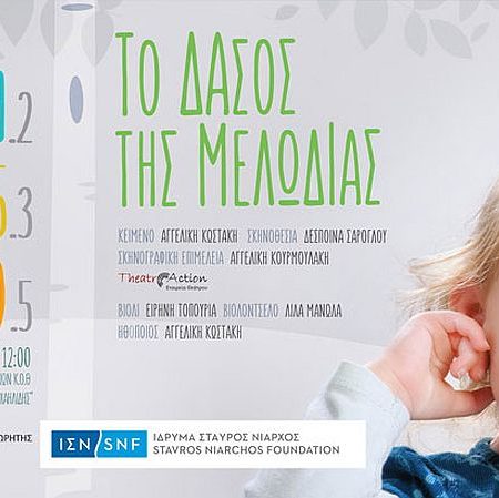 Μία παράσταση με ήχους, εικόνες, χρώματα και γνωστή μουσική αγαπημένων κλασικών συνθετών, βασισμένη στο παραμύθι ‘Το Δάσος της Μελωδίας’ της Αγγελικής Κωστάκη, που επιχειρεί να ενεργοποιήσει τις αισθήσεις των μικρών παιδιών μέσα από τη μαγεία της μουσικής και του θεάτρου.