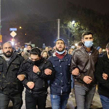 Χιλιάδες διαδηλωτές συγκεντρώθηκαν το Σάββατο στο κέντρο του Γερεβάν για να ζητήσουν την παραίτηση του Αρμένιου πρωθυπουργού Νικόλ Πασινιάν, που βρίσκεται στο επίκεντρο επικρίσεων επειδή αποδέχθηκε την εκεχειρία, με την οποία αναγνωρίζεται η νίκη του Αζερμπαϊτζάν, έπειτα από έξι εβδομάδες πολέμου στο Ναγκόρνο Καραμπάχ.