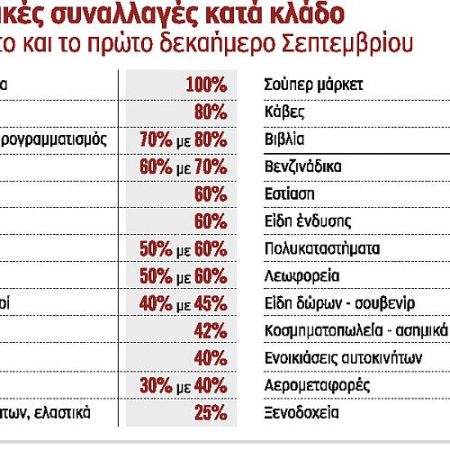 Σταθερά καλά πηγαίνουν τα φαρμακεία με αύξηση τζίρου 30%-40% και τα σούπερ μάρκετ με αύξηση 25%. Επίσης, στα κουρεία και κομμωτήρια η αύξηση ήταν 9% τον Αύγουστο και 37% το πρώτο δεκαήμερο Σεπτεμβρίου, καθώς επιστρέψαμε από τις διακοπές μας.