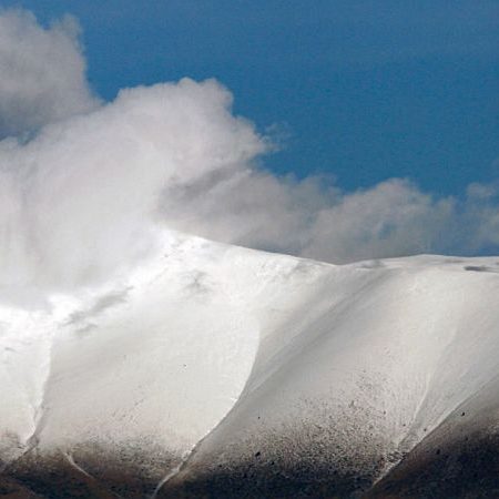 Οι κατάλευκες κορυφές ξεχωρίζουν ανάμεσα στο φυσικό χρώμα των βουνοπλαγιών και το καταγάλανο του ουρανού. Σκέτη μαγεία…