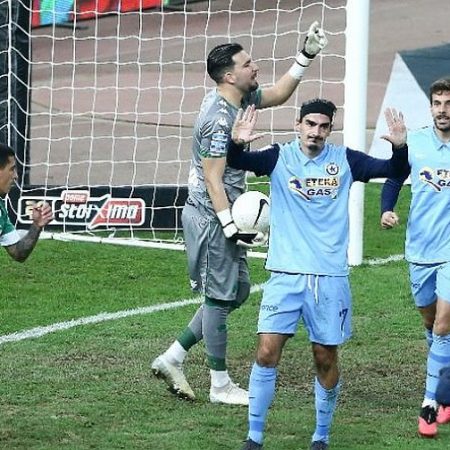 Στο 37΄ ο Χατζηγιοβάνης υποδέχθηκε η μπάλα από κλέψιμο του Κουρμπέλη, μπήκε στην περιοχή, αλλά το πλασέ του έφυγε πάνω από το δοκάρι, στην τελευταία καλή στιγμή του πρώτου μέρους.