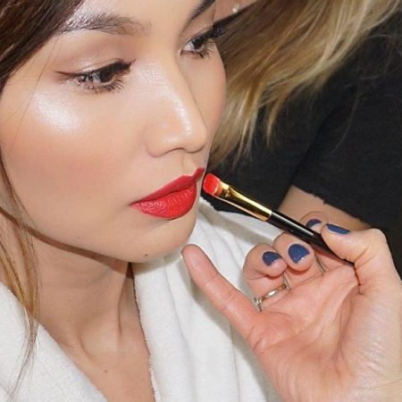 Στη συνέχεια, χρησιμοποιώντας το ειδικό πινέλο χειλιών (μυτερό, με τις τρίχες να είναι ενωμένες) ξεκινάτε να βάφετε τα χείλη σας από τις άκρες και συνεχίζετε προς τα μέσα. Το καλύτερο είναι όση ώρα βάφετε τα χείλη σας να τα έχετε κλειστά, ούτε τεντωμένα, ούτε “ζαρωμένα”.