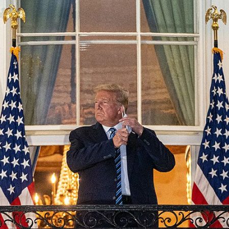 Μολονότι οι γιατροί του τονίζουν πως δεν έχει ακόμη ξεπεράσει ακόμη τελείως τον κίνδυνο, ο Τραμπ, χωρίς μάσκα, επέμεινε να υποβαθμίζει την πανδημία, λίγο καιρό προτού διεξαχθούν οι προεδρικές εκλογές.