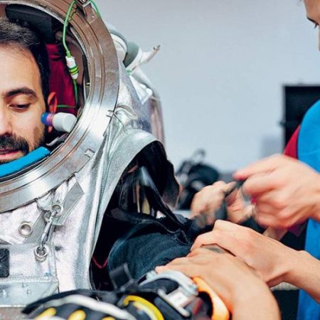 Ισως το πιο απαιτητικό κομμάτι της αποστολής στην έρημο Νεγκέβ να είναι αυτό της χρήσης της ειδικής στολής. Ο κ. Γολέμης εξηγεί ότι χρειάζεται περίπου μία ώρα για να τη φορέσει κάποιος, πάντα με τη βοήθεια άλλου μέλους του πληρώματος. Ολος ο εξοπλισμός ζυγίζει 50 κιλά, ενώ οι συμμετέχοντες θα φορούν κάτω από τη στολή ειδικές μεταλλικές κλειδώσεις, κάτι σαν εξωσκελετό, που σκοπό θα έχει να περιορίζει το εύρος των κινήσεών τους για να γίνει όσο πιο ρεαλιστική γίνεται η προσομοίωση.