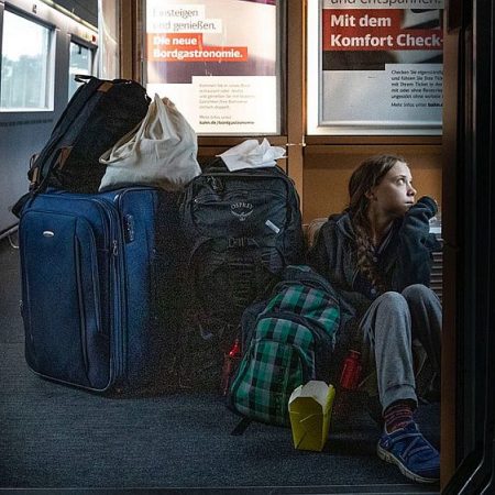 Ξαφνικά, την Κυριακή, γίνεται viral μία φωτογραφία, στην οποία η Γκρέτα Τούνμπεργκ απεικονίζεται ταλαιπωρημένη, στοιβαγμένη ανάμεσα σε βαλίτσες, και καθισμένη στο πάτωμα ενός γερμανικού τρένου υψηλής ταχύτητας (ICE).