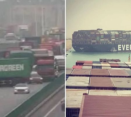 Αστειευόμενος, χρήστης του Twitter σχολίασε πως η εταιρεία «Evergreen» φαίνεται να προσπαθεί να κατακτήσει τόσο τη στεριά όσο και τη θάλασσα.