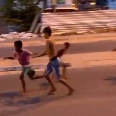 Βραζιλιάνοι πιτσιρικάδες παίζουν ξυπόλητοι μπάλα στην άσφαλτο, η απουσία παπουτσιών δεν τους δυσκολεύει και ένας εξ’ αυτών πετυχαίνει ένα απίστευτο γκολ!