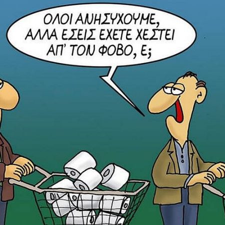 Ειδικές αναφορές κάνει στα σκίτσα των τελευταίων ημερών στην τρέλα με το… χαρτί υγείας, στην ατομική ευθύνη, αλλά και στον ιό της βλακείας.