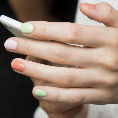 Δε μπορούμε να πάρουμε τα μάτια μας πάνω από αυτό το πολύχρωμο ombre μανικιούρ, που αποτελείται από πολλές και διαφορετικές αποχρώσεις της ίδιας χρωματικής οικογένειας. Για παράδειγμα, επιλέξτε όλους τους παστέλ κι έντονους τόνους του κίτρινου και της ώχρας και προτιμήστε από έναν σε κάθε νύχι. Με αυτόν τον τρόπο θα φτάσετε σε ένα πιο funky αποτέλεσμα. Τέλος, το συγκεκριμένο σχέδιο είναι η τέλεια λύση για τις αναποφάσιστες από εσάς που δε μπορείτε να καταλήξετε σε ένα χρώμα.