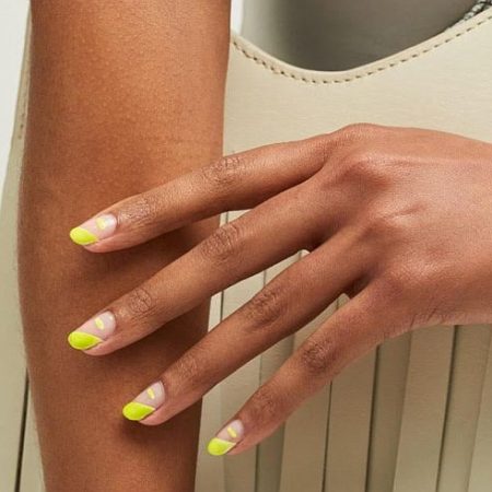 Όλες αγαπάμε το nude και τις αποχρώσεις του, από τις πιο ανοιχτές μέχρι τις πιο σκούρες. Ωστόσο, αυτό το καλοκαίρι μήπως ήρθε η ώρα να «σπάσετε» τη μονοτονία του και να το κάνετε πιο χαρούμενο και fashionable; Τι μπορείτε να κάνετε λοιπόν: Στραφείτε προς το neon κίτρινο ή λαχανί και συνδυάστε το με το beige που θα υπάρχει σε όλη την επιφάνεια των νυχιών σας. Αυτό το αλλιώτικο «μπλέξιμο» θα απογειώσει τα summer looks σας και είναι μια hot πρόταση στα nail designs του φετινού καλοκαιριού.