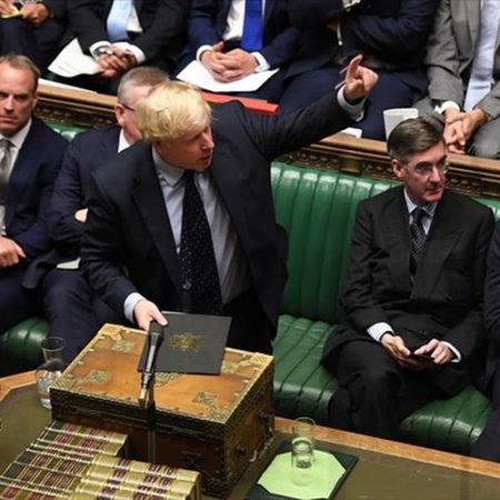 «Αυτή η κυβέρνηση θα βγάλει τη χώρα από την Ε.Ε. στις 31 Οκτωβρίου. Υπάρχει μόνο ένα εμπόδιο στον δρόμο μας: το “νομοσχέδιο παράδοσης” που προτείνεται αυτή τη στιγμή από τον αρχηγό της αντιπολίτευσης», δήλωσε ο Τζόνσον στη Βουλή των Κοινοτήτων.