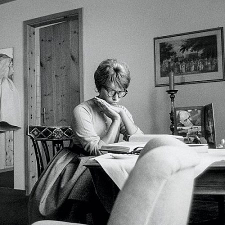 Στην Ελβετία συλλαμβάνει ο φωτογραφικός φακός τη Σοφία Λόρεν, σε μια ήσυχη στιγμή της δεκαετίας του ’50. Σε μια εξοχική κατοικία της ελβετικής υπαίθρου, σε κάποιο ψηλό υψόμετρο, η νεαρή Ιταλίδα μοιάζει προσηλωμένη στο βιβλίο της, δίπλα σε μια φωτογραφία του συντρόφου της, Κάρλο Πόντι, ενώ ένα φόρεμα με πλούσια φούστα κρέμεται στον τοίχο.