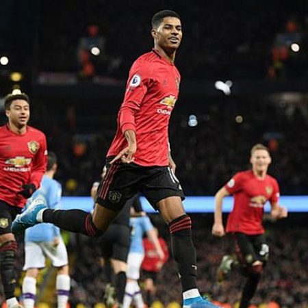 Στο πρώτο ημίχρονο υπήρχε μόνο μία ομάδα κι αυτή ήταν η Γιουνάιτεντ. Οι «κόκκινοι διάβολοι» επιβεβαιώνοντας τα σχέδια επί χάρτου, χτυπούσαν συνεχώς τη Μάντσεστερ Σίτι στις αντεπιθέσεις και αν ήταν πιο προσεκτικός στα τελειώματά του ο Τζέιμς και ο Ράσφορντ θα μπορούσαν να έχουν ανοίξει πολύ νωρίς το σκορ. Ωστόσο, η λύση ήρθε μέσω εντός πέναλτι που κέρδισε ο Ράσφορντ από τον Μπερνάρντο Σίλβα, με τον Άγγλο φορ να κάνει το 0-1 στο 23′.