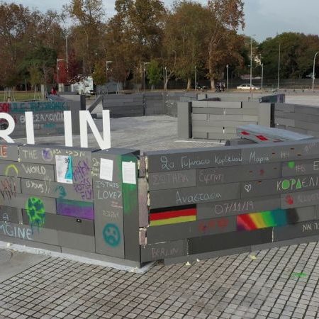 Ένα συμβολικό «τείχος της ντροπής» όπως αποκαλούσαν το τείχος του Βερολίνου, οι Γερμανοί της Δύσης, χτίζεται από μαθητές και μαθήτριες σχολείων της Θεσσαλονίκης μπροστά από το άγαλμα του Μεγάλου Αλεξάνδρου, προσομοιώνοντας τις στιγμές που βίωσαν οι κάτοικοι του Βερολίνου κατά την ανέγερση του, τον Αύγουστο του 1961.