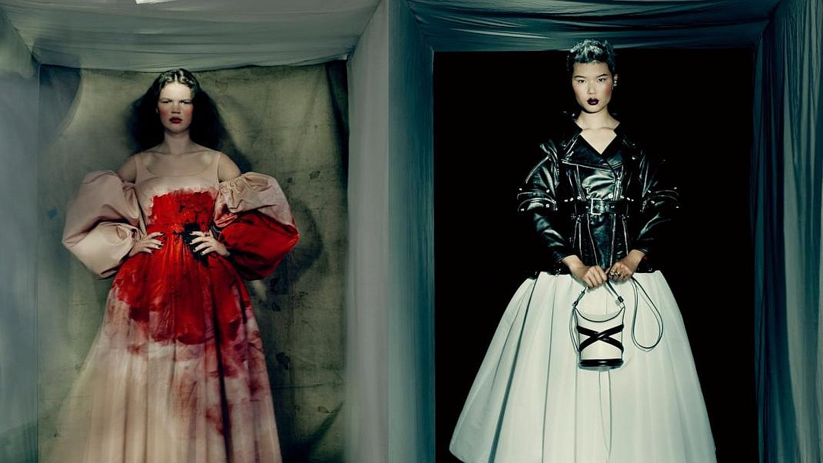 Τα φορέματά της μοιάζουν ματωμένα, λες και οι γυναίκες που τα φορούν να έχουν βγει από μια γοτθική ιστορία τρόμου από αυτές τις κλασικές της βρετανικής υπαίθρου με τους σκοτεινούς πύργους και τα κελάρια που είναι γεμάτα μυστικά.