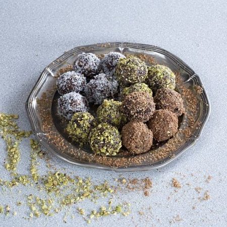 Τρουφάκια με χουρμάδες, βερίκοκα, καρύδια και αμύγδαλα