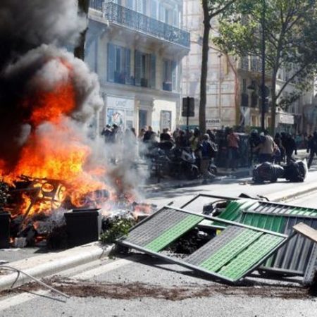 Το κέντρο των επεισοδίων σήμερα ήταν η λεωφόρος Σεν-Μισέλ, όπου μέλη του ακροαριστερού κινήματος Black Blocs και «κίτρινα γιλέκα» –κάποιοι είχαν καλυμμένα τα πρόσωπά τους– εκτόξευαν διάφορα αντικείμενα εναντίον των δυνάμεων της τάξης. Στη συνέχεια προκάλεσαν φθορές σε μια τράπεζα και πυρπόλησαν κάδους απορριμάτων.
